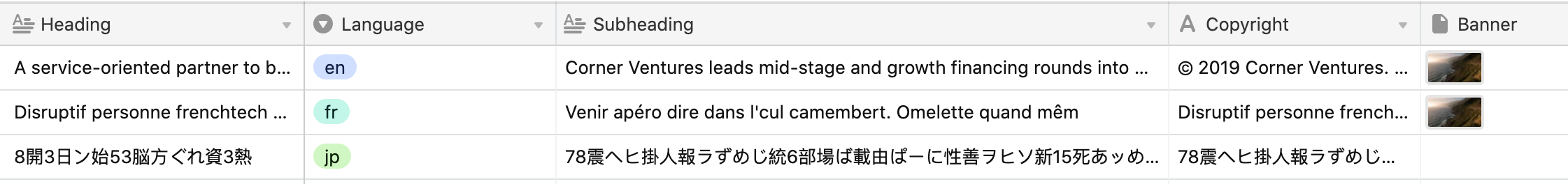 For every language, we need to add a corresponding row to the table to represent the piece of content in that language.