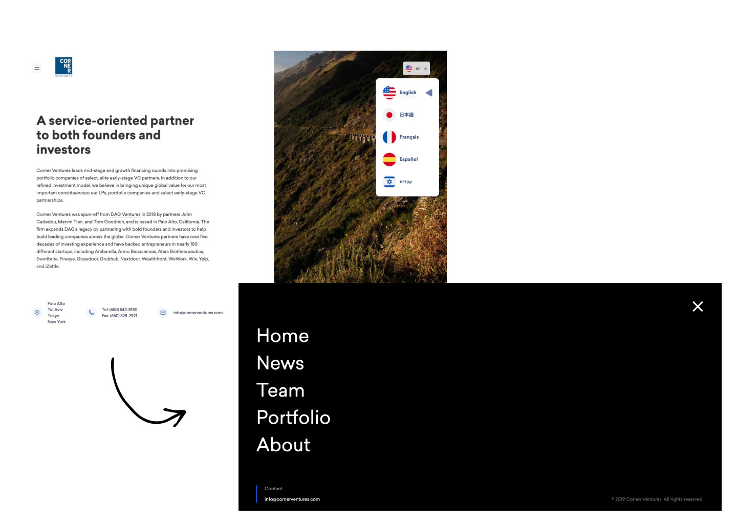 Second, the live website is exported using next's static page generator, next export. Using a pretty complex exportPathMap function, each language is rendered under a separate URL with the appropriate content for that language from Airtable. So, for instance, domain.com/fr/team is the Team page in French.