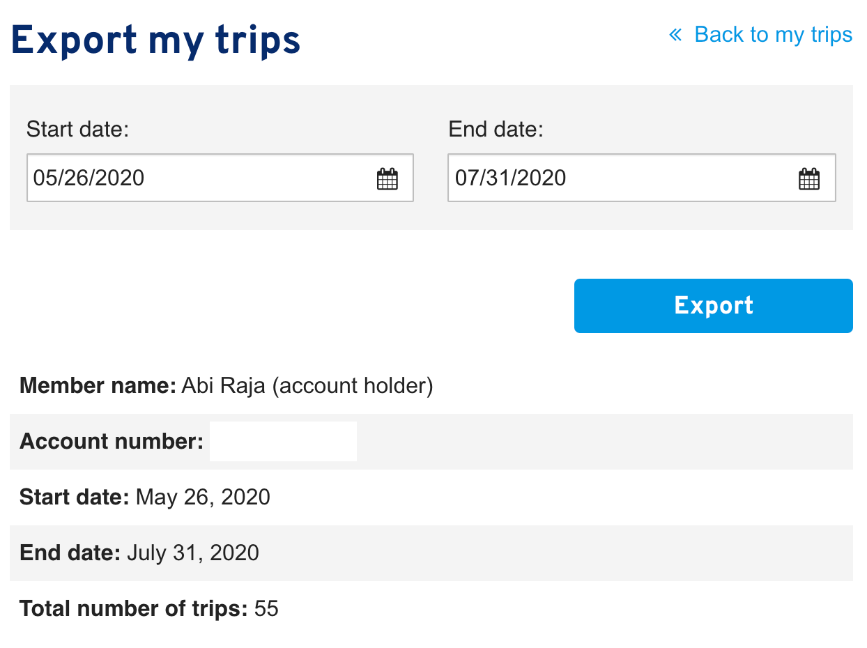 I have already taken 55 trips! How had I underestimated my usage so much? The estimate had missed by almost 4x! 55 expected trips in 8 months vs. 55 actual trips in 2 months.